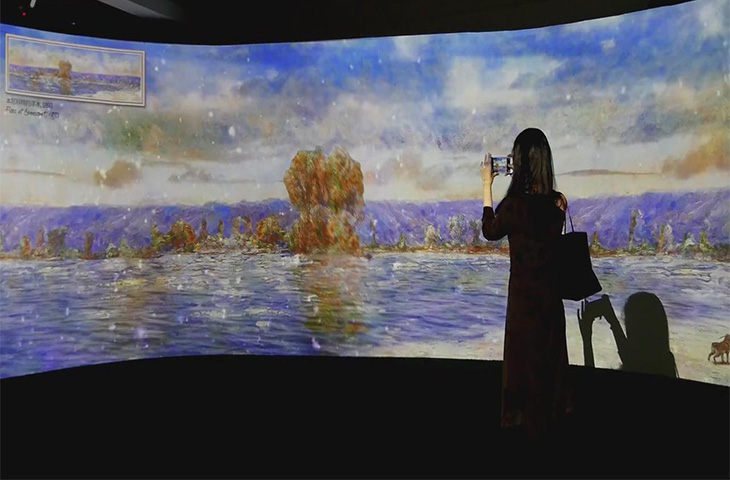 沉浸式的觀感體感:超過180度的環抱包圍圈,結合特定的燈光、音箱系統、數字影片,給參觀者營造出沉浸式的觀感氛圍,達到身臨其境的觀感體感;