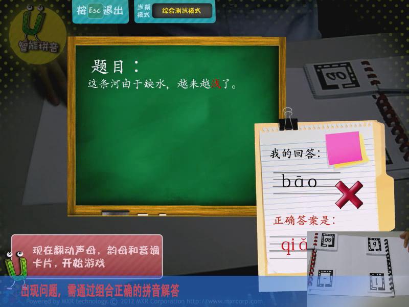 通過AR游戲的形式,讓參與者能夠學習拼音,主要分為靴子聲韻母、聲調、同音字測試、綜合測試四大模式,讓學習拼音變得更加有趣。